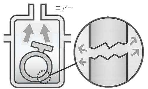 含浸(がんしん)は、鋳造品内部に発生する微細な空隙(鋳巣・ピンホール)に薬剤(含浸剤)を浸透させ、硬化させることで密閉する技術です。