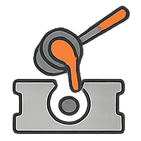 金属を高温で溶かし、あらかじめ用意した型に流し込んで冷やし固め、目的の形に仕上げる加工方法です。