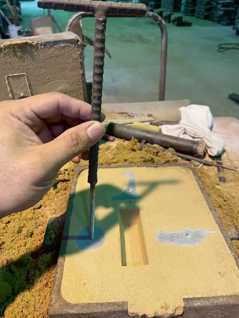 金属が冷えて固まったら鋳型を外し、不要な部分を取り除きます。